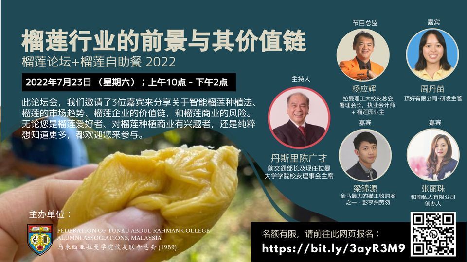 无论您是榴莲爱好者、对榴莲种植商业有兴趣者,还是纯粹想知道更多,都欢迎您来参与。