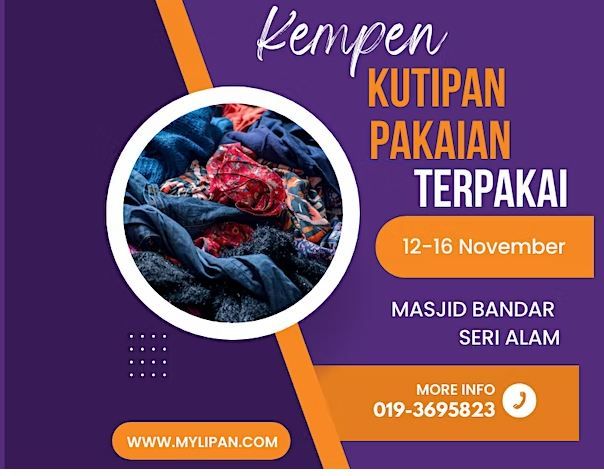 Jom sertai Kempen Kutipan Pakaian Terpakai dengan kerjasama Masjid Bandar Seri Alam.
